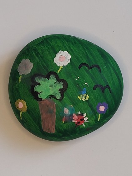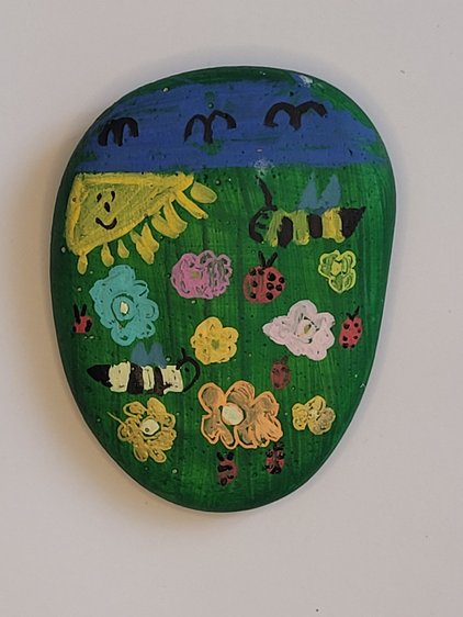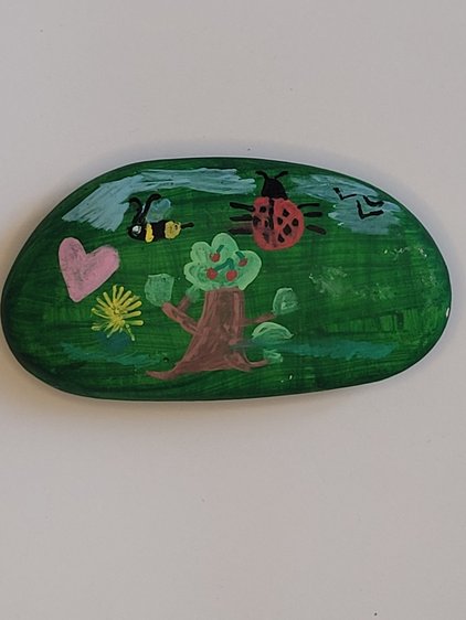 Die "Hermsdorfer Wandersteine" sind ein Projekt des Hortes der Hermsdorfer Kita Abenteuerland". Die Hortkinder haben mit Unterstützung ihrer Erzieherinnen Steine gegossen, bemalt, mit einem QR-Code versehen und in der Umgebung ausgelegt.