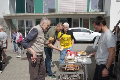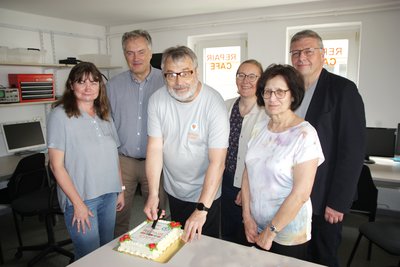 Großer Bahnhof zwischen Lötstation und Akkuschrauber: Eine Torte von der Stiftung Leben in der Hohen Börde, Respekt und Dank von Gemeindebürgermeister Andreas Burger und von Ortsbürgermeister Dieter Dähnhardt, viel Applaus und Glückwünsche von Freunden, Unterstützern und interessierten Besuchern waren der Lohn für die aufreibenden vergangenen Wochen.