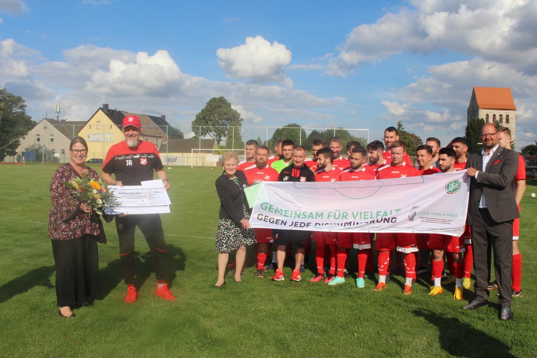 Als „vorbildhafter Impulsgeber für eine solidarische Gesellschaft“ ist der SV Groß Santersleben 1924 e. V. mit einem Integrationspreis des Landes Sachsen-Anhalt ausgezeichnet worden. Konkret war es der zweite Preis in der Kategorie „Dauerhaftes und nachhaltiges Engagement für Vielfalt“. Susi Möbbeck lobte als Staatssekretärin im Sozialministerium und Integrationsbeauftragte der Landesregierung bei der Übergabe am 4. August 2023 auf dem Sportplatz in Groß Santersleben deshalb besonders den „langen Atem“ des Sportvereins um Präsident Jens Alicke.