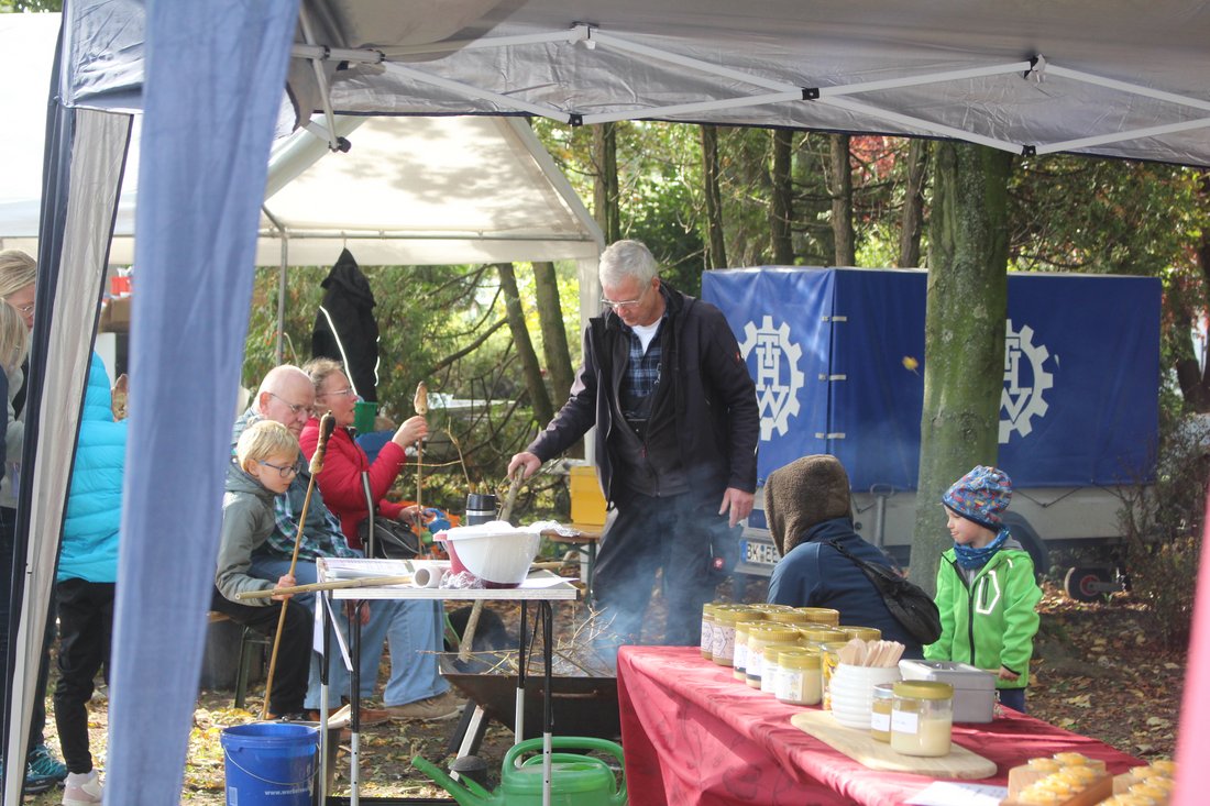 Dazu gab es jede Menge Informationen am Stand des Freiwilligenbüros und bei Eric Berger vom Streuobstwiesenprojekt im Hermsdorfer Naschgarten. Zu guten Gesprächen luden auch Imker Matthias Fricke, Matthias Konschak von der mobilen Obstmosterei und die Hohenwarsleber Kleingärtner ein. Dazu gesellten sich das Repaircafé Hohe Börde und Landfrau Anne Gendera an der Drehorgel. Dicht umringt wie eh und je war der Tischlerstand von Werner Meyer, der dieses Mal mit den Kindern Nistkästen zimmerte. Dazu tanzten die Mädels von Grün-Rot Bornstedt einen bunten Reigen und die Bornstedter Kita-Knirpse amüsierten am Anger mit Gedichten und Geschichten. Für das leibliche Wohl sorgten in gewohnter Manier Ortsbürgermeister Sven Nachtigall und die örtlichen Hundesportler. Sie hatten auch vom frühen Morgen bis in die Abendstunden für eine reibungslose Versorgung der Anbieter mit Strom und Wasser gesorgt.
