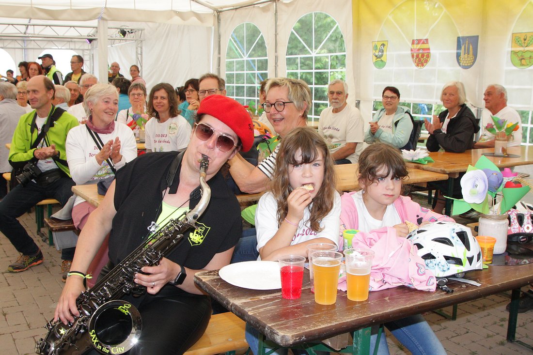Ein großes Hallo erwartete die Teilnehmer im festlich geschmückten Rottmersleben. Eine imposante Festmeile und herzliche Gastgeber belohnten für die Anstrengungen im Sattel. Das Sax`n Anhalt Orchester ließ die Festgemeinde beben. Bürgermeister Andreas Burger begrüßte die Tourenführer auf der Bühne. Losfee Clara zog die Gewinner der Tour-Tombola. Das E-Bike ging in diesem Jahr an Saskia Schick aus Ackendorf, Anita Grothe gewann einen 150-Euro-Gutschein von „Ihr Einrichter – Spill“, der 50-Euro-Gutschein der Rottmersleber Handwerksbrauerei Schütte ging an Stefan Böttcher aus Hohenwarsleben.