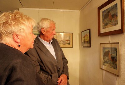 Neben den „verborgenen Schätzen an der Straße der Romanik“ zog gleichzeitig auch eine Reihe Schackensleber Ansichten die Blicke auf sich. Nach anfänglich vereinzelten Leihgaben, die Stefanie Gendera und Rolf Kühle „ausgegraben“ hatten, hatten die Schackensleber bis zu jenem Tag 19 Kunstwerke zusammengetragen, die Gebäude aus ihrem Ort zeigen.