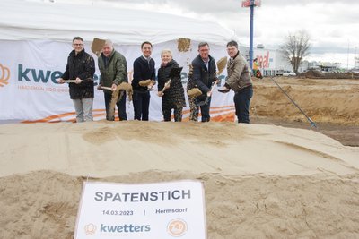 Mit dem ersten Spatenstich hat die Kwetters Deutschland Immobilien GmbH den symbolischen Startschuss für den Bau einer hochmodernen Eier-Pack-Anlage in Hermsdorf (Gemeinde Hohe Börde) vollzogen. Das Unternehmen errichtet im Auftrag der Kwetters Logistik GmbH auf einer 17 Hektar großen Fläche eine moderne Industrieanlage mit einer überbauten Grundstücksfläche von 13.700 Quadratmetern.