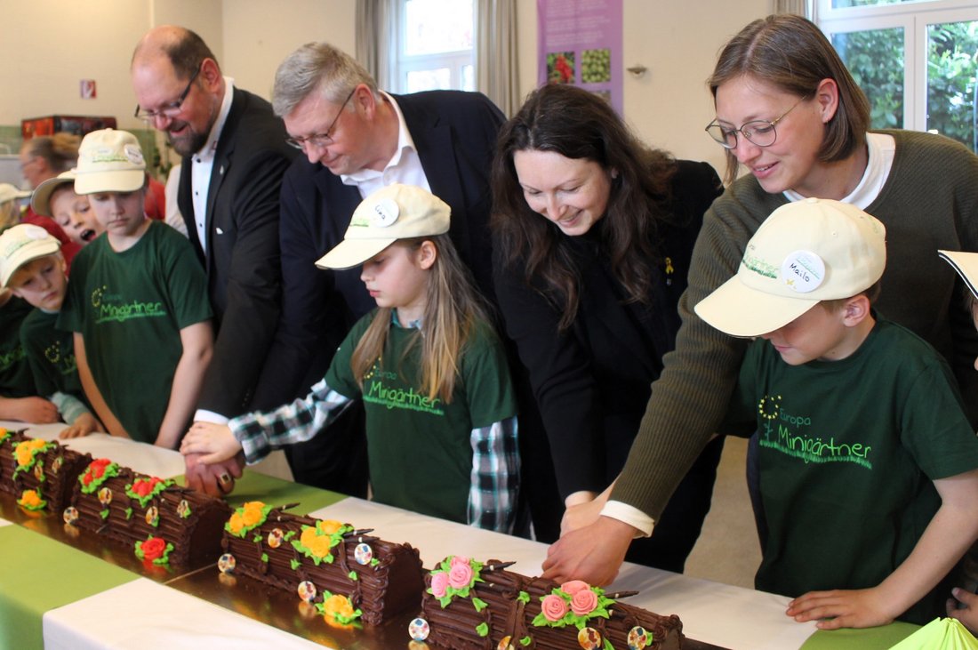 „Ihr seid jetzt wohl bundesweit die größte Minigärtner-Gruppe“, zeigte sich Projektmanagerin Solveig Wappler-Niemeyer begeistert, die zur Auftaktveranstaltung extra von der Blumen-Insel Mainau (Bodensee) angereist war. Sie sprach ihren Dank allen Unterstützern des Projektes aus.
