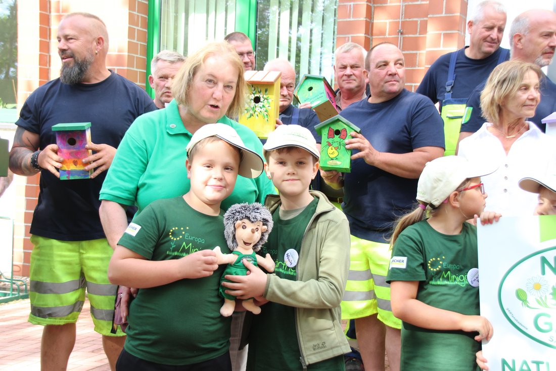 Zur Grünen Gemeinde zählen auch die „Minigärtner“ der Hohen Börde. Die Kinder widmen sich im Rahmen ihres „Minigärtner-Projektes“ um die ganze Vielfalt eines naturnahen Gartens. Dazu zählen auch Insekten. Zur Preisverleihung an die Gemeinde überreichten die jungen Gartenfreunde selbst gebastelte Nistkasten an die Bauhofmitarbeiter.