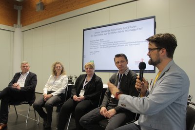 Aktuelle Trends und Entwicklungen bei der Digitalisierung in Schulen und Kindertageseinrichtungen standen im Mittelpunkt der Vorträge, Workshops und Podiumsdiskussionen der Fachmesse, die sich vor allem an die Lehrerschaft richtete. Auf dem Podium berichteten Rathausvertreter der Hohen Börde über ihren Ansatz und beantworteten Fragen aus dem Auditorium.