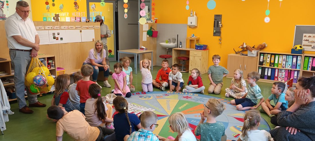 Auf Kennenlern-Tour durch die Kitas der Hohen Börde hat sich Gemeindebürgermeister Andreas Burger begeben. Bis auf den noch ausstehenden Besuch der Wellener Kita „Kleeblatt“ hat der Bürgermeister seit dem Frühjahr alle Kitas und Horte in kommunaler und privater Trägerschaft besucht, um sich ein persönliches Bild von Kinderbetreuungseinrichtungen, deren Ausstattung und Herausforderungen zu machen.
