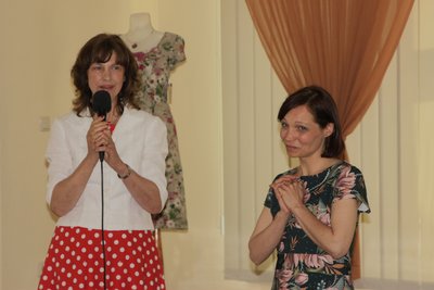 Bei kleinen Köstlichkeiten und Sekt entführte das dynamische Frauen-Duo die Gäste auf eine Modezeitreise mit musikalischen Hits aus den verschiedenen Modeepochen. Das kam toll an.