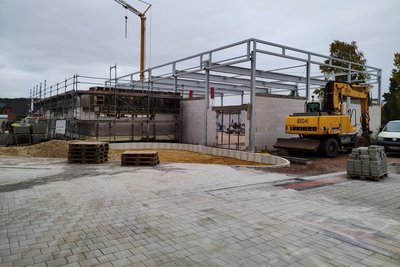 Der Grund für die Bauverzögerung sind laut Angaben des Bauamtes fehlende Trapezbleche. Eine Lieferung erfolgte erst nach einer Wartezeit von fünf Monaten. Die Trapezbleche sind für die Dachkonstruktion nötig. Auch bei anderen Gewerken wie Fenster, Türen, Tore etc. ist nicht abschätzbar, ob es zu weiteren Schwierigkeiten kommt. „Wir hoffen, dass die Bauhülle noch in diesem Jahr geschlossen wird,“ erklärte das Bauamt. Der Rohbau, einschließlich der Dachkonstruktion, ist voraussichtlich im November abgeschlossen.