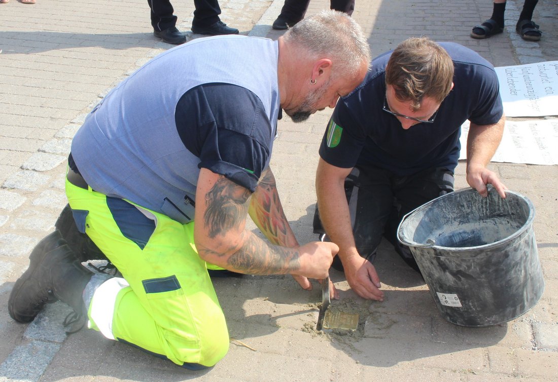 Obwohl der Stein klein ist, so hat er doch eine große Bedeutung – er zwingt, sich zu erinnern. Und deshalb forderte Ruben Harm auf: „Stolpern Sie mit Kopf und Herz“. Die Verlegung wurde musikalisch umrahmt vom Liedermacher Johann Voß aus Belsdorf.