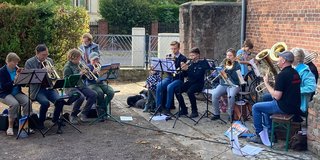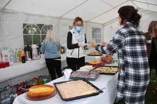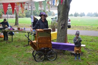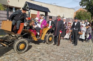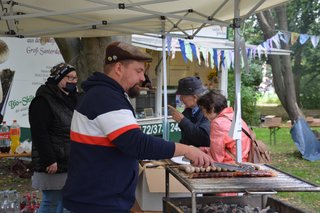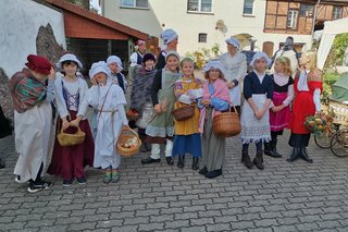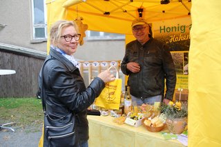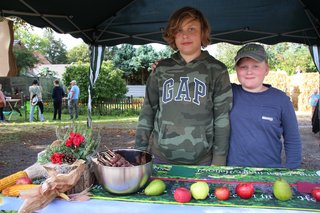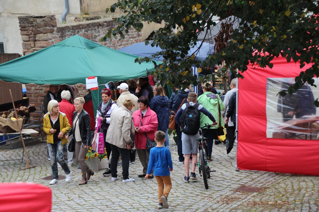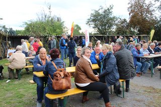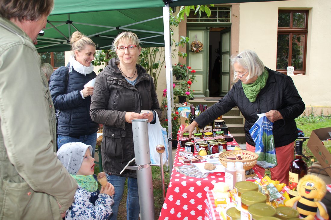 In Bebertal stimmte der Posaunenchor und die Jagdhornbläser auf das Fest ein. Es gab Krustenbraten, selbstgemachte Marmelade, Mützen, Malereien und Herbstkränze.