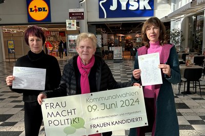 Für das politische Engagement von Frauen haben sich Frauen aus der Region mit einem Gesprächsangebot im Elbepark eingesetzt. Angesichts der in diesem Jahr anstehenden Kommunal- und Europawahlen am 9. Juni warben Steffi Trittel, die Vorstandsvorsitzende der Stiftung Leben in der Hohen Börde und die Organisatorinnen der Aktion „Frauen in die Politik“, Carmen Niebergall und Brigitte Klaus, für dieses Anliegen und suchten in der Mall des Einkaufscenters das Gespräch mit Frauen und Männern. Gemeindebürgermeister Andreas Burger untersützt das Anliegen.
