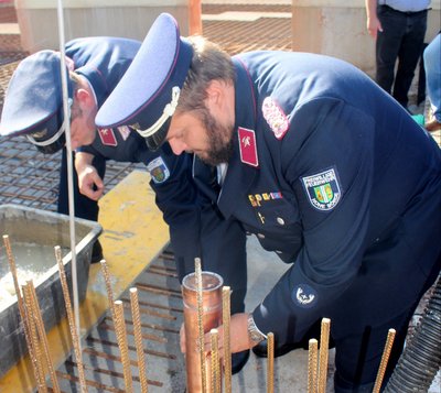 Prallgefüllt ist die Zeitkapsel, die in Anwesenheit von Bauleuten, Feuerwehrkameraden und Vertretern aus der Politik und der Gemeindeverwaltung am Donnerstag, 28. September, im Boden des Erweiterungsbaus des Eichenbarleber Feuerwehrgerätehauses versenkt worden ist. Neben einem Gründungsplan, einer tagesaktuellen Zeitung und Münzen befinden sich darin auch aufgeschriebene Gedanken des Ortswehrleiters Marko Glufke sowie ein Feuerwehrauto im Miniaturformat.