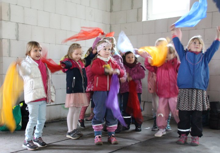 Die Kitakinder aus Ackendorf und Schackensleben haben für die Gäste des Rohbaufestes Herbstlieder gesungen und einen Tanz aufgeführt.