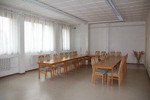 Der Versammlungsraum befindet sich im Seitenflügel der „Dorfscheune“. Er bietet Platz für bis zu 20 Personen . Ein barrierefreier Zugang ist vorhanden.