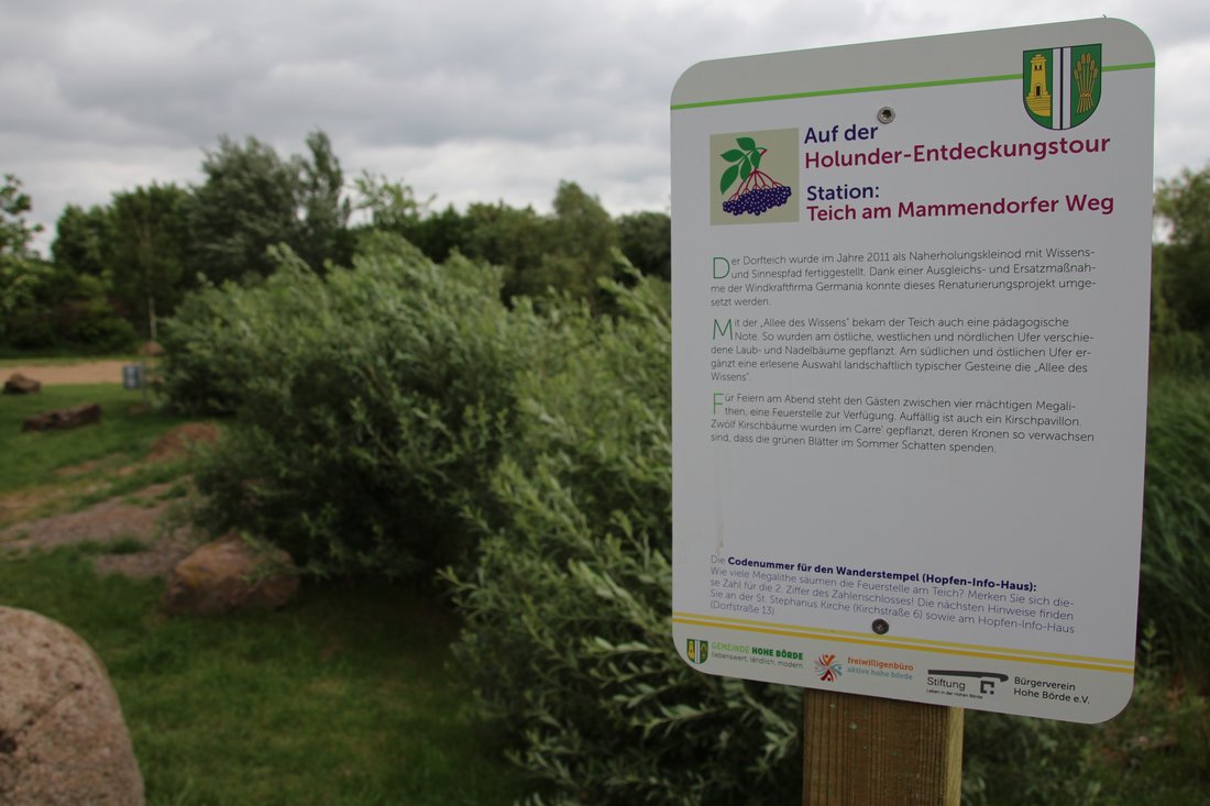 „Holunderentdeckungstour“ heißt das neue Wandernetz, das seit dem Frühsommer in den meisten Ortschaften der Hohen Börde erkundet werden kann. In den Dörfern bilden Kästen mit Wanderstempeln - ähnlich der „Harzer Wandernadel“ - Anlaufpunkte für Wandertouren in und zwischen den Ortschaften. Den Schlüssel zum Stempelkästen ermöglicht ein Code, den die Holunder-Wanderer im Dorf entschlüsseln müssen.